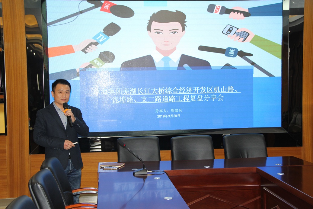 2019年3月29日下午,由發(fā)展中心組織的2019年第二場(chǎng)項(xiàng)目復(fù)盤分享交流會(huì)在聯(lián)海集團(tuán)五樓會(huì)議室舉行,本次復(fù)盤分享是由周宗兵同志帶來的《蕪湖長(zhǎng)江大橋綜合經(jīng)濟(jì)開發(fā)區(qū)磯山路、泥埠路、支二路道路工程復(fù)盤...