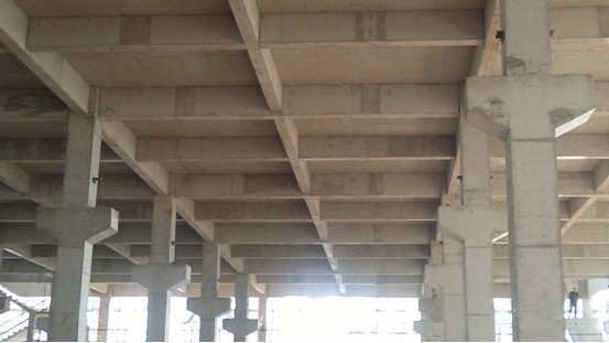 該工程總建筑面積約2萬平方米,底層層高9米,為高大模板施工。為此,我們詳細制定了高支模專項施工方案,嚴格按照專家論證的要求去搭設模板。通過項目部的規(guī)范施工,精心組織,合理安排,最終,按計劃保質(zhì)保量保安全,廠房如期封頂。