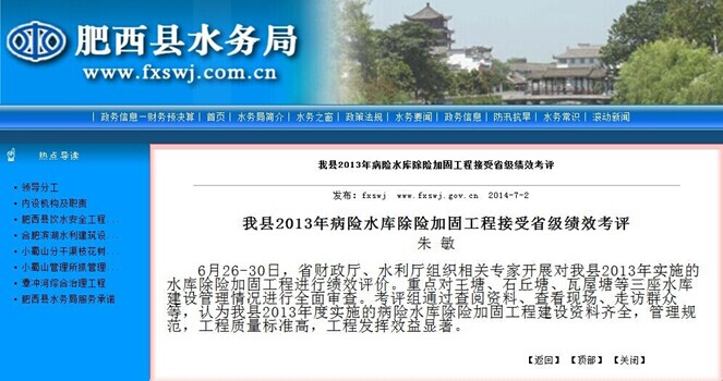 6月26-30日,省財政廳、水利廳組織相關專家開展對肥西縣2013年實施的水庫除險加固工程進行績效評價。我公司承建的1標段工程,因工程質量過硬、工程外觀美觀、工程資料齊全被肥西縣水務局作為肥西縣2013年實施的水庫除險加固工程的代表,迎接了考評組的全面審查。考評組通過查閱資料、查看現(xiàn)場、走訪群眾等,認為該工程建設資料齊全,管理規(guī)范,工程質量標準高,工程發(fā)揮效益顯著。為肥西縣2013年度實施的病險水庫除險加固工程帶來了榮譽。
