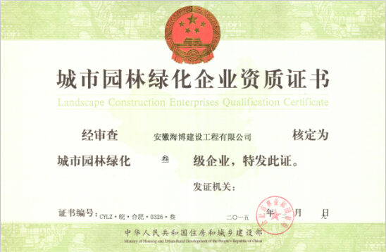 2015年2月17日,值此歲末,新春佳節(jié)之際,又一好消息傳來(lái),我公司申報(bào)的“城市園林綠化叁級(jí)資質(zhì)”獲批。
