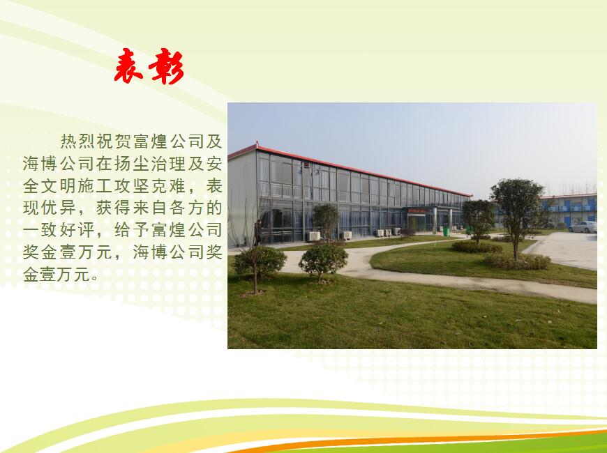 5月初,中央環(huán)保督察組進(jìn)駐合肥,開展為期一個(gè)多月的水、土壤和大氣污染等環(huán)保治理工作督察。海納項(xiàng)目部迅速響應(yīng),積極行動,組織人員對現(xiàn)場安全文明施工和揚(yáng)塵治理工作進(jìn)行全面梳理,排查安全隱患,落實(shí)整改措施。沿施工道路設(shè)立圍擋,張掛綠籬、公益廣告,場區(qū)裸露土體全覆蓋,配置霧炮機(jī),栽種綠化苗木,并對門前道路、工地大門出入口、辦公區(qū)、場內(nèi)臨時(shí)道路、土方作業(yè)面等每日定時(shí)灑水降塵。劃分責(zé)任區(qū),明確責(zé)任人,建立獎罰制度,使整個(gè)項(xiàng)目的施工環(huán)境上了一個(gè)臺階。