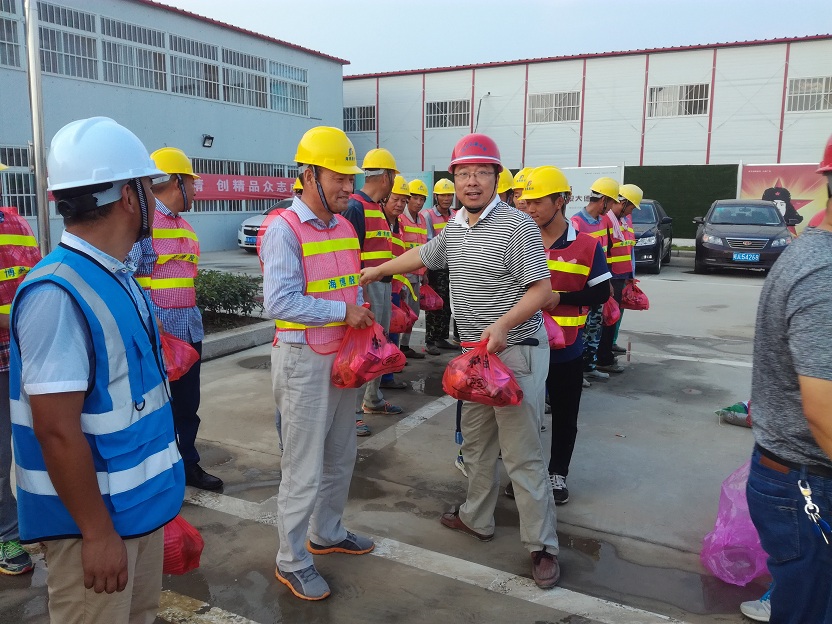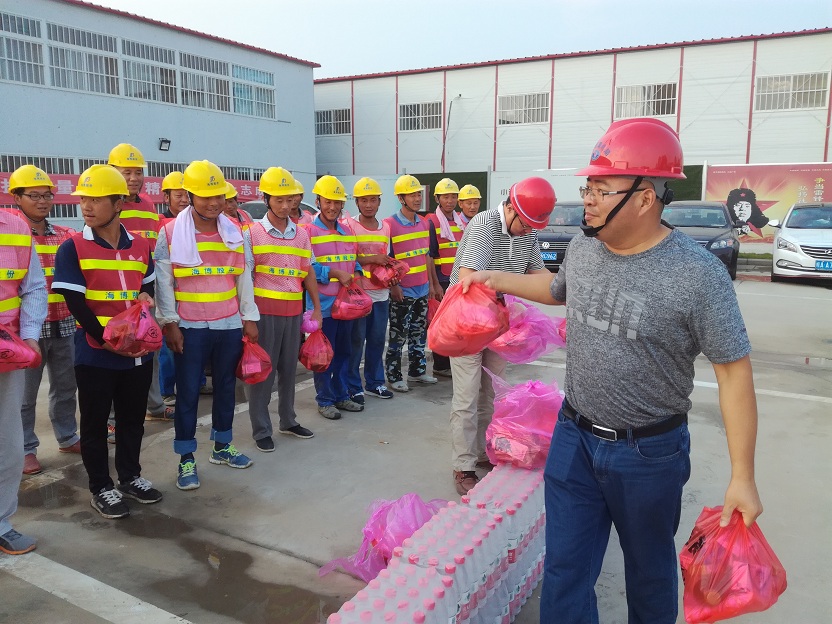 盛夏時節(jié),連續(xù)多日40度的高溫炙烤著合肥大地。7月28日,合肥市經(jīng)開區(qū)重點局張局長、董處長和海納項目辦何主任冒著酷暑,來到我公司海納新能源項目,給項目部送來了防暑降溫物資并逐一發(fā)放到工人手中。張局長對頂著烈日奮戰(zhàn)在一線的全體施工人員給予高度的贊賞和關心。投資運營中心周總和部分管理人員、現(xiàn)場監(jiān)理、工人代表,參加了慰問儀式。周總代表項目部對重點局領導表示感謝,要求全體員工鼓足干勁,精心組織精心施工,不辜負各級領導的關懷和期待。