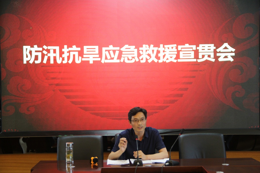 然后由防汛抗旱領導小組總工程師吳其洋同志作《防汛抗旱形勢及專業(yè)知識交底報告》。吳總工程師從本市氣候分析、險情形式與內(nèi)容、組織與實施、應急保障與安全等方面,并結(jié)合歷史實例全方位的報告了防汛抗旱的工作指南。