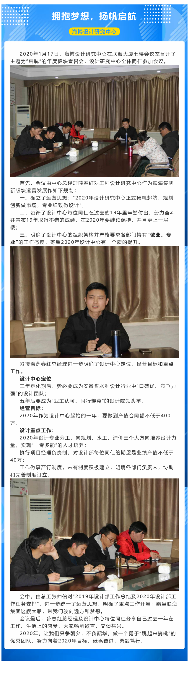 擁抱夢想,揚(yáng)帆啟航——設(shè)計(jì)研究中心2020年重點(diǎn)工作會(huì)議